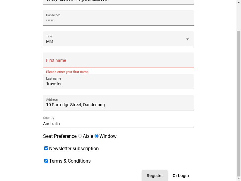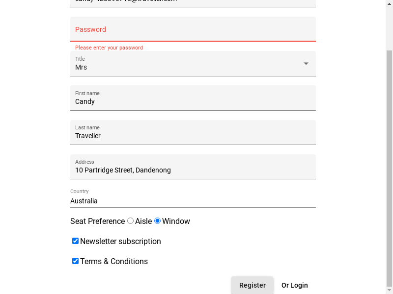 Candy enters 'candy-428396715@traveller.com' into Email field