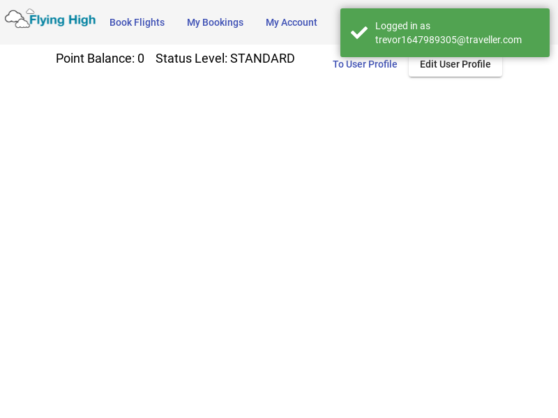 Given Trevor has logged onto the Frequent Flyer application as a new member