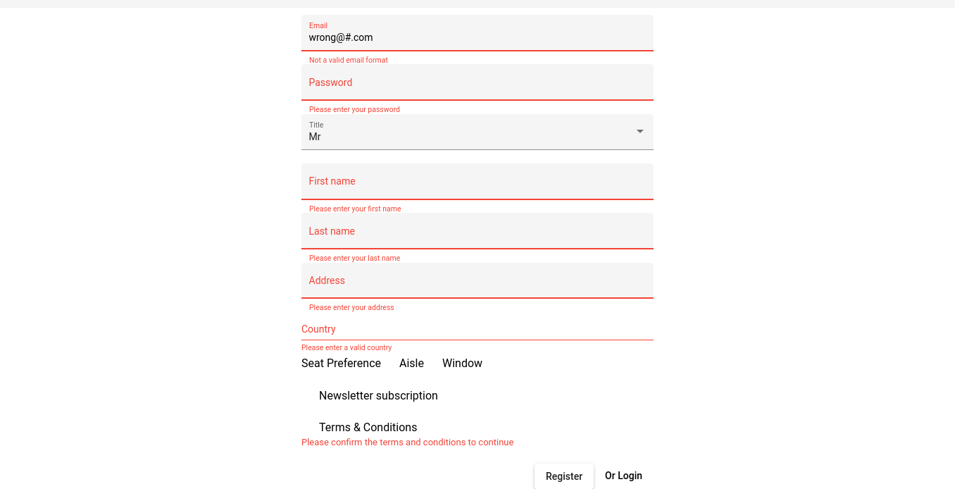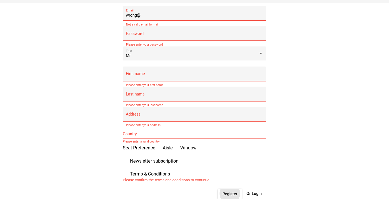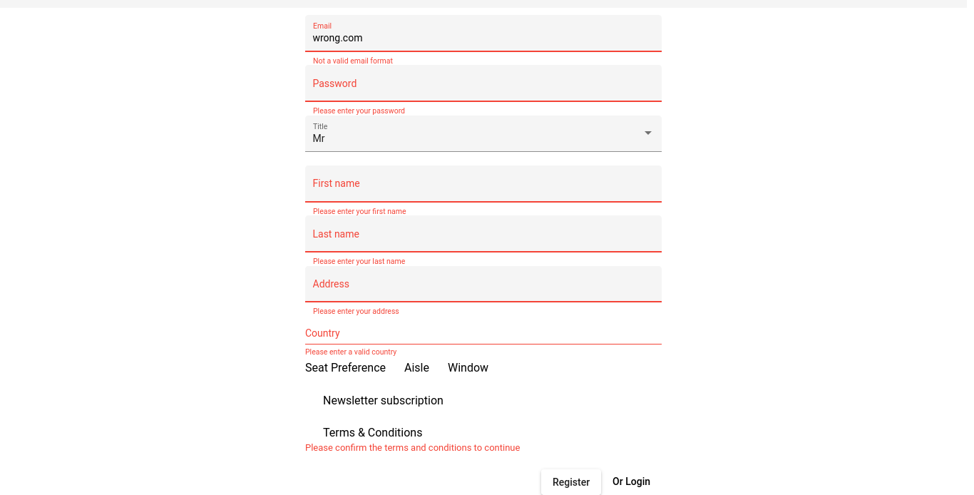 Candy enters 'wrong@' into Email field