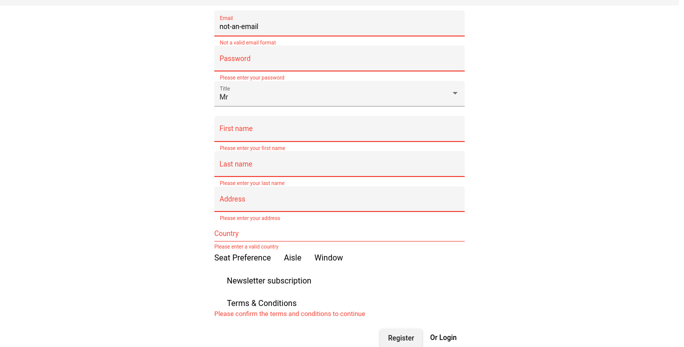 Candy enters 'not-an-email' into Email field