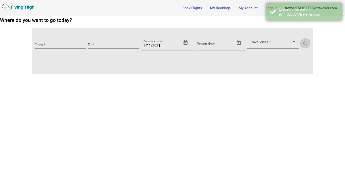 he expects to see a message of 'Logged in as trevor-974102733@traveller.com'